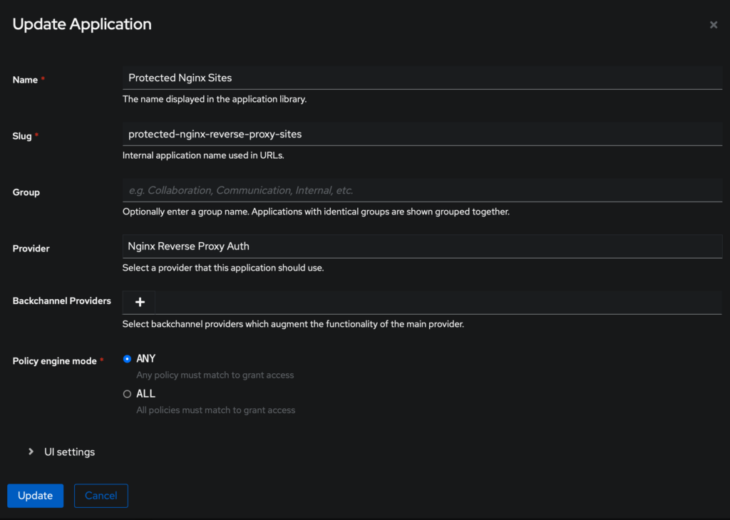 In Authentik, create an Application: