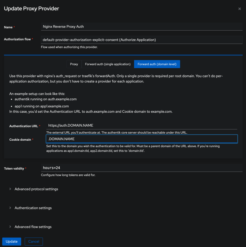 # CRITICAL: Set Host to auth.DOMAIN.NAME so Authentik knows which provider to use